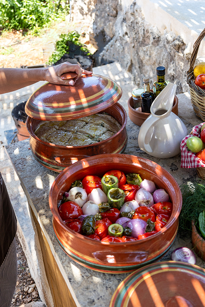 Live an authentic experience of cooking, tasting and cultural interaction in a magical environment. Collect vegetables and herbs from the garden for our dishes. All together, under the guidance of our experienced chefs, we will prepare the recipes by processing the pure local products: olive oil, vegetables, legumes, cheese, fish, meat, aromatic herbs, which we will then cook in ovens and in traditional fire pits using olive wood. At the same time we will have the opportunity to enjoy the unique experience of making traditional dough! Learn to cook organic local ingredients in clay pots over an open fire like the Minoans. Experience the richness of the Minoan culture and the colorful Cretan way of life.